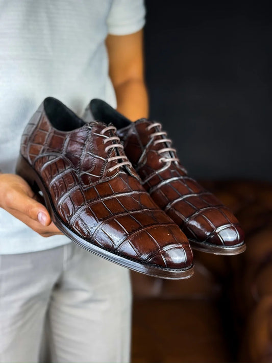 Handcrafted Black Crocodile Leather Men's Dress Shoes