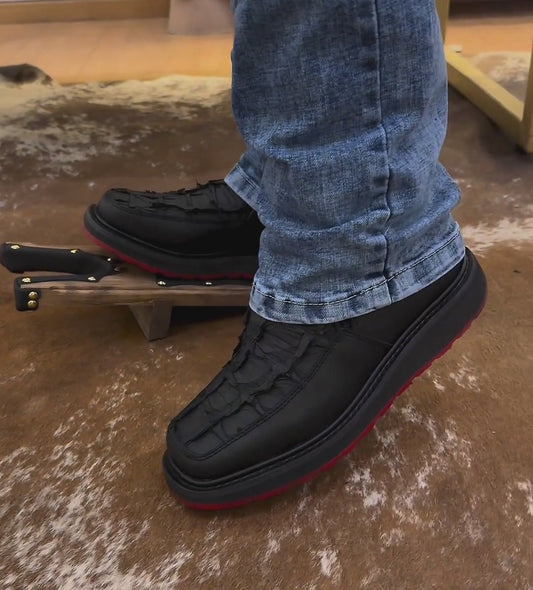 Sold outHandmade crocodile print boots