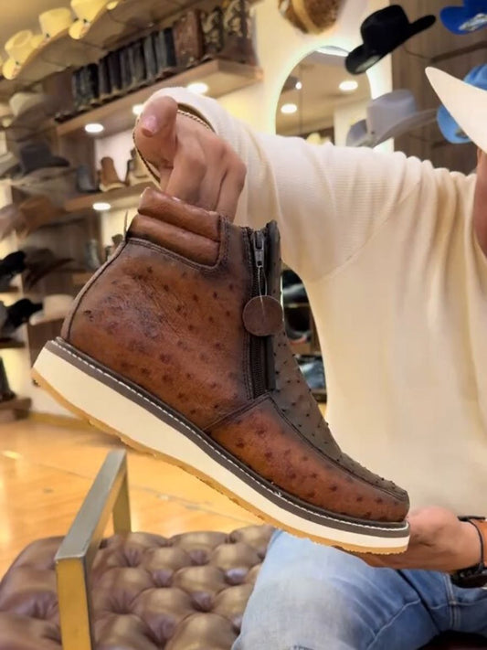 (⏰New Arrivals Promotion $20 OFF) Brown Cowhide Oval Boots