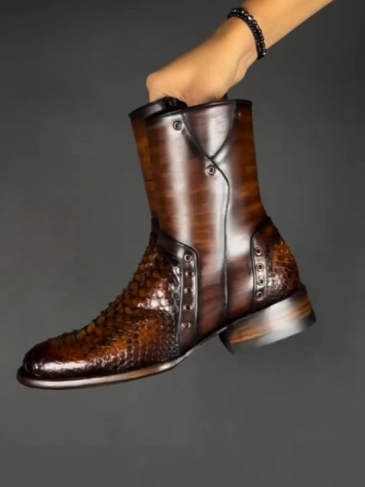 (⏰New Arrivals Promotion $20 OFF) Handmade Python Mid-calf Boots