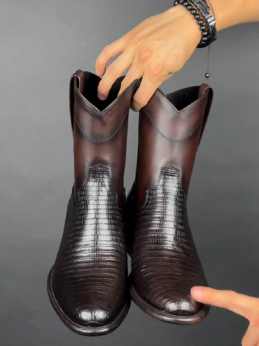 (⏰New Arrivals Promotion $20 OFF) Lizard Leather Dark Brown Boots