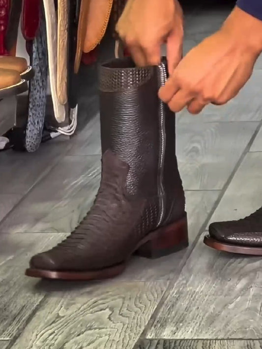 (⏰New Arrivals Promotion $15 OFF) Hand-Woven Cowhide Zipper Cowboy Boots